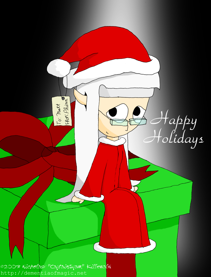 So, in 2002 I didn't have a holiday pic for everyone. Thus, I HAD to make one for 2003. Enjoy the holidays with everyone's favorite white-haired elf geek girl!
