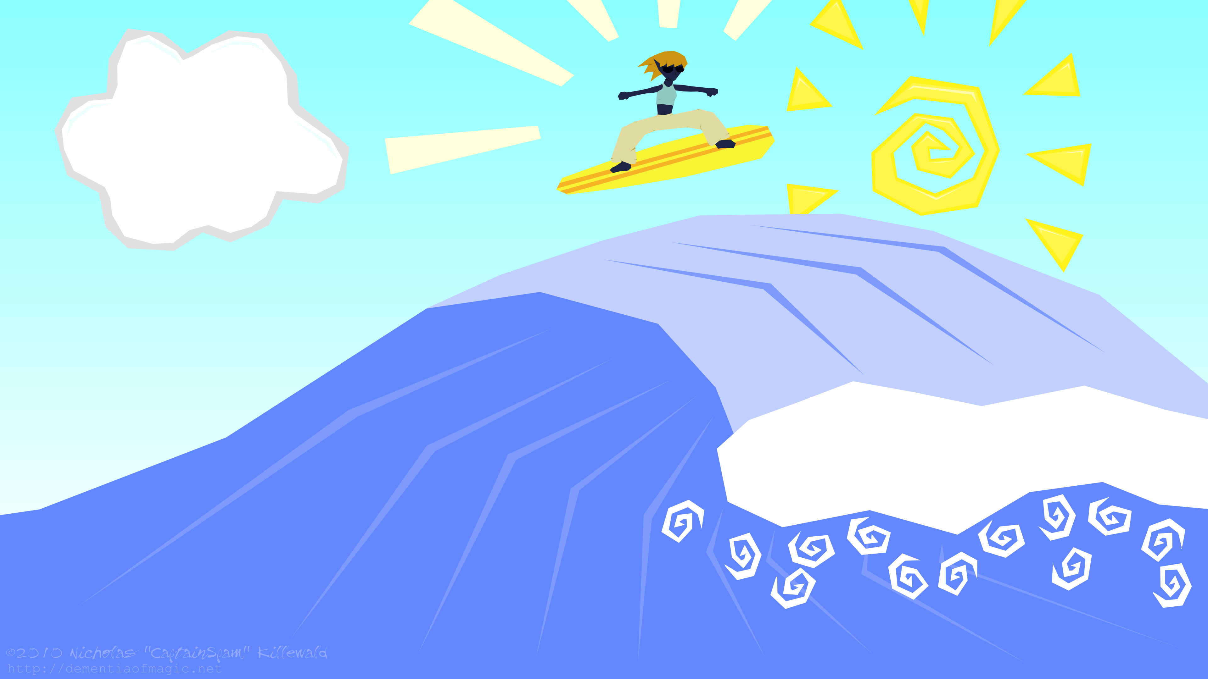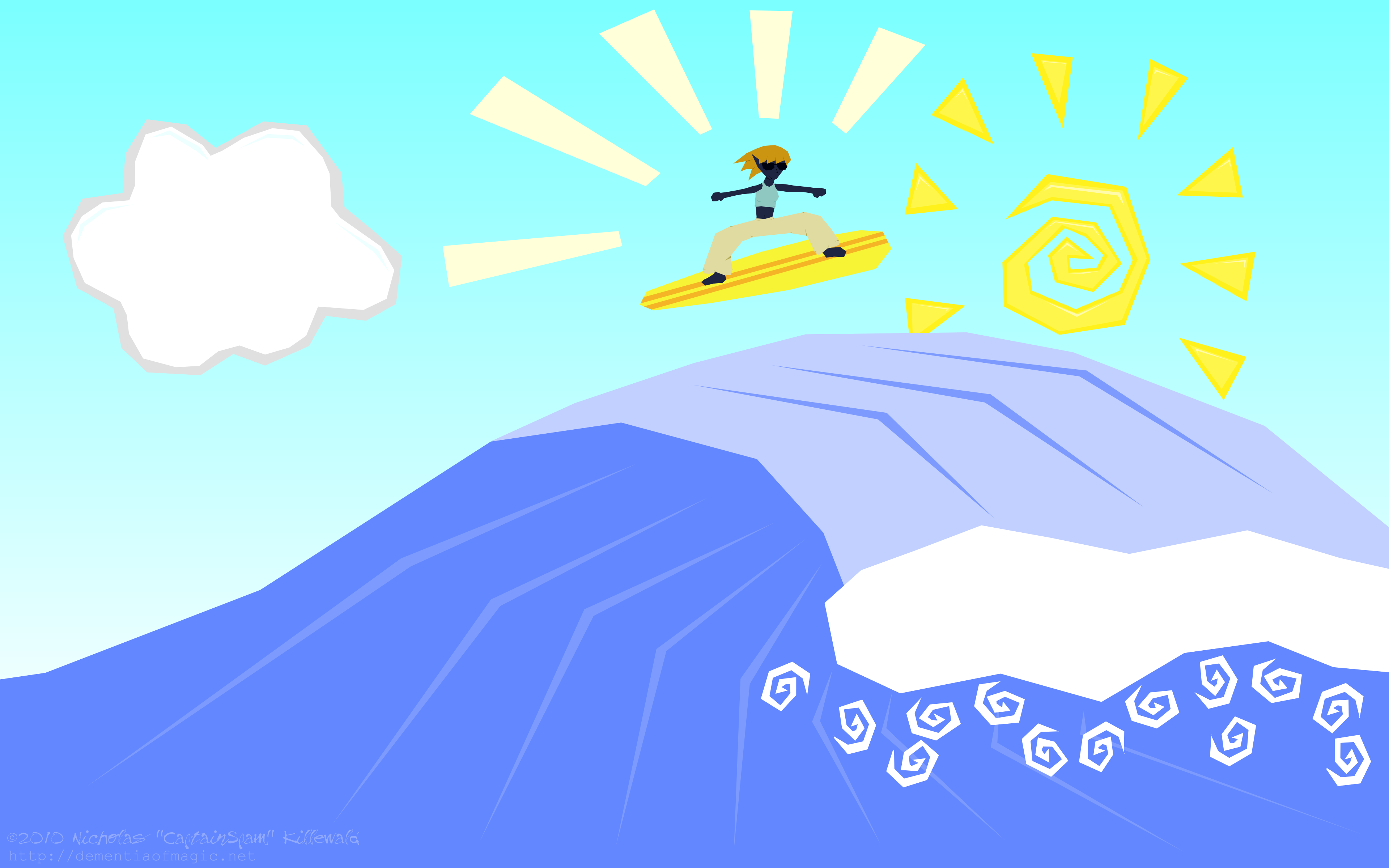 You remember that bright idea I had to make wallpapers for all of Chapter Four? Well, that got sort of derailed. But, this was going to be the second one: A vectoriffic wallpaper of a beach elf doing what she does best. A different style than what I usually go for. Happy summer! In the northern hemisphere!