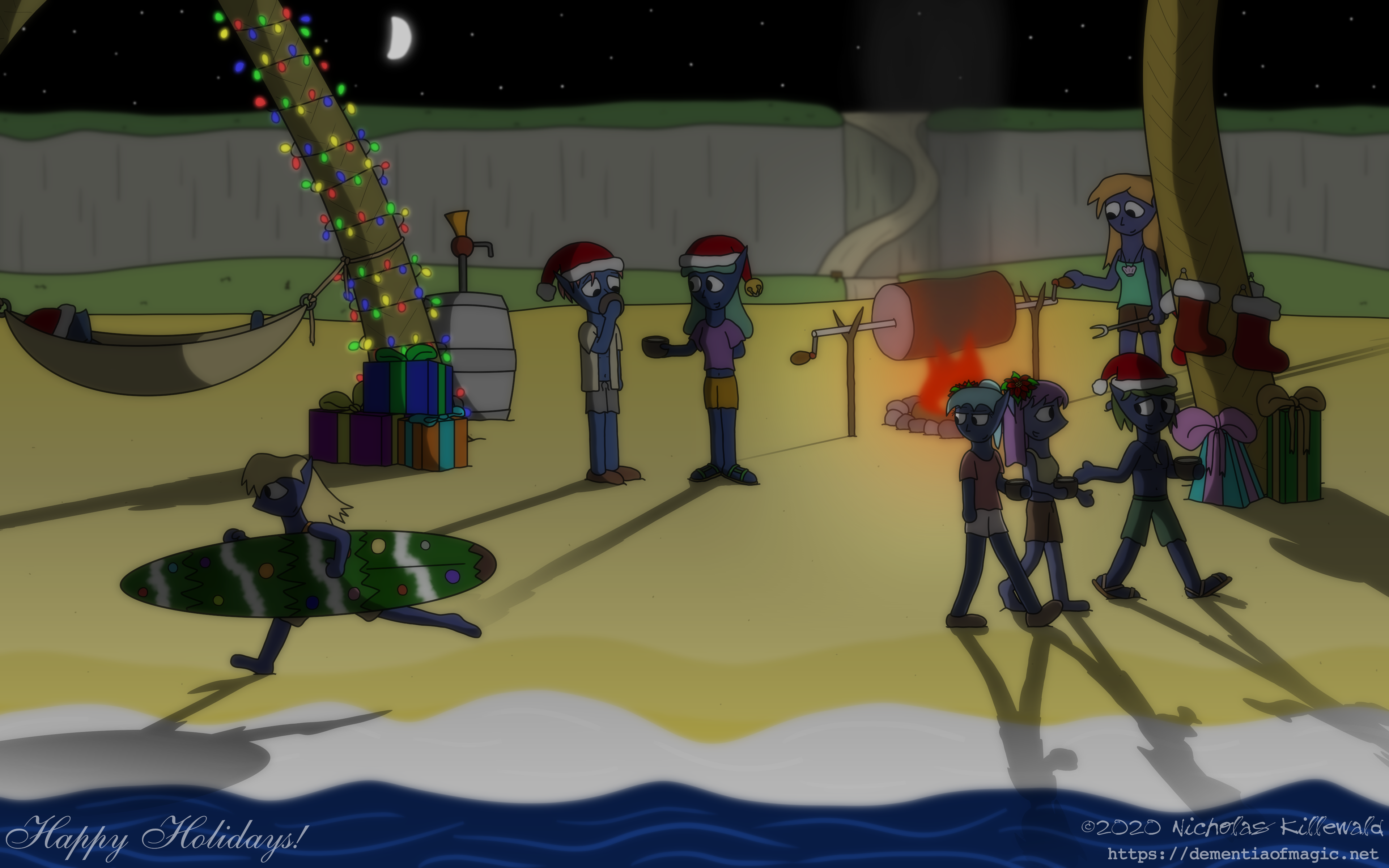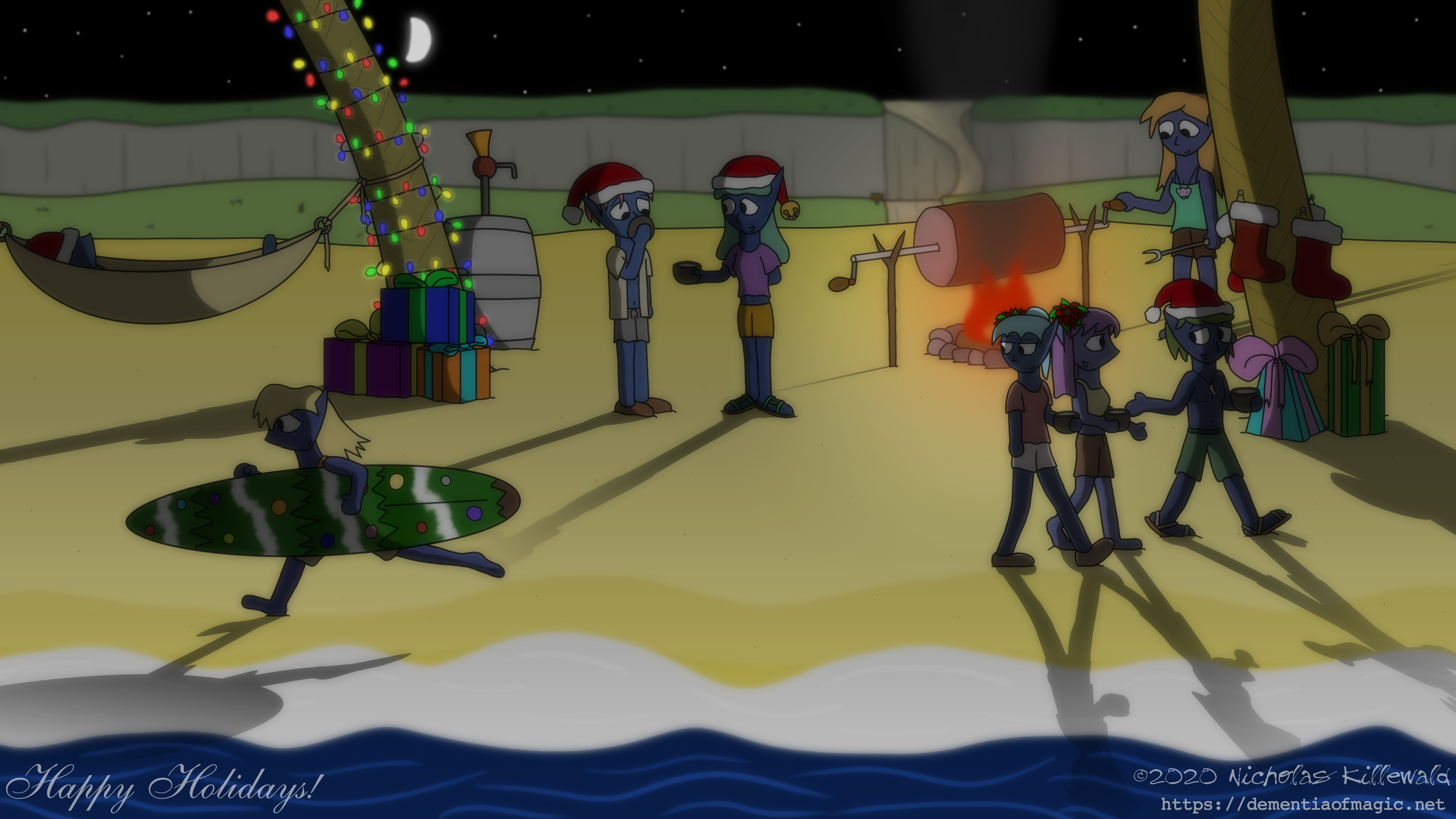 Again, every four years was not the plan. But never mind that, it's a 2020 holiday wallpaper! Take whatever niftiness you can from the year, I say. And I choose to say it with beach elves enjoying a holiday night on the beach! I also choose to do so with a ludicrous amount of layers and filters! Enjoy! Happy holidays!