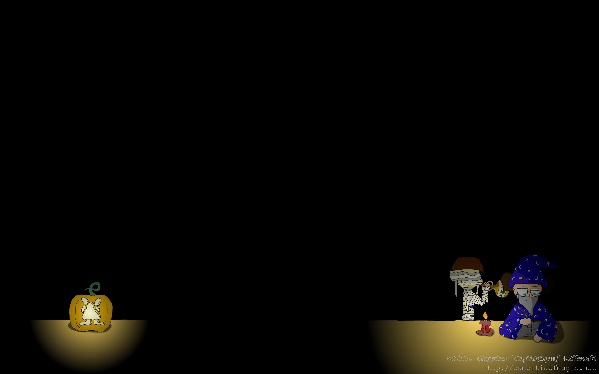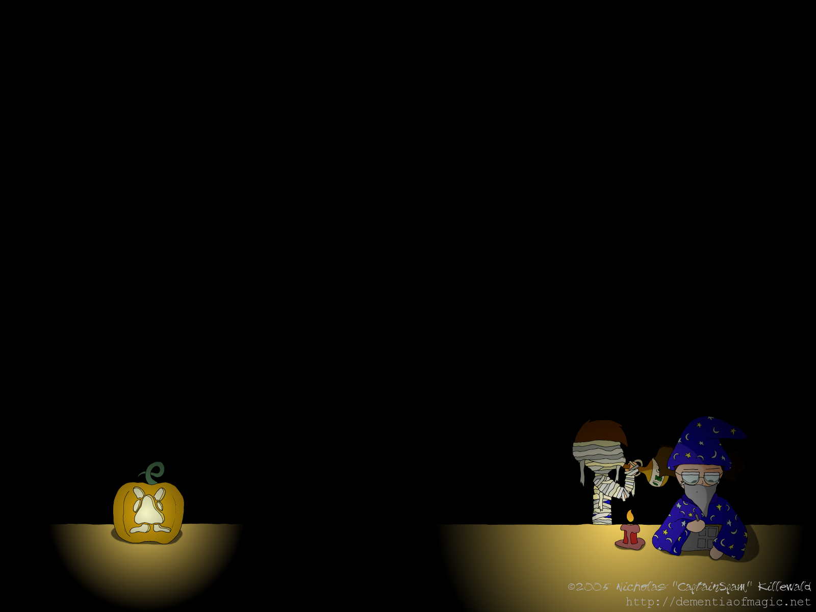 So, Halloween reared its head once again. And wouldn't you know it, I decided on a wallpaper this year! Enjoy myself and Phil as our usual festive selves in the corner of your desktop!